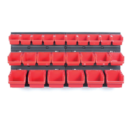 Nástenné úložné riešenie, 2 montážne panely + 30 škatuliek 3 druhov