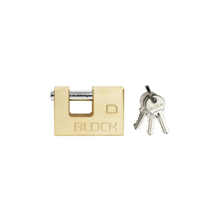 Mosadzný visiaci zámok, vodorovný tvrdený strmeň, 3 kľúče
