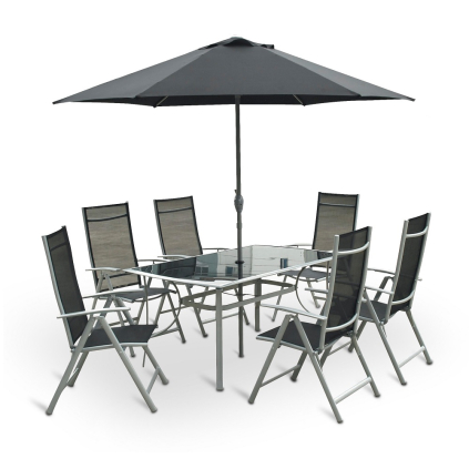 Záhradná zostava: stôl + 6 miest na sedenie, konštrukcia z hliníkovo-oceľových profilov,...