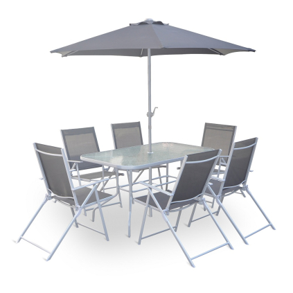 Záhradná zostava: stôl + 6 miest na sedenie, konštrukcia z hliníkovo-oceľových profilov,...