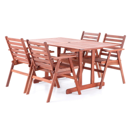 Záhradná zostava: 4 skladacie stoličky + skladací stôl, konštrukcia z dreva meranti