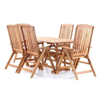 Záhradná zostava: 6 skladacích stoličiek + skladací stôl, konštrukcia z dreva meranti