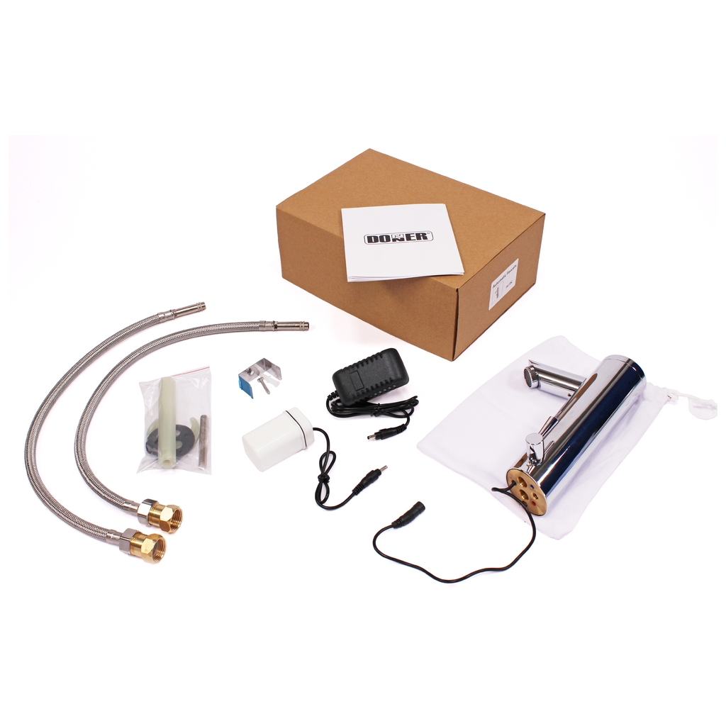 Telo batérie Donner AutoFlow 01 je vyrobené z pochromovanej mosadzi. Vybavené je čidlom pohybu, ktoré sa postará o automatické spustenie prúdu vody. Stačí vložiť ruky k čidlu vo vzdialenosti 6-30 cm. Po skončení umývania sa prúd vody zastaví sám.