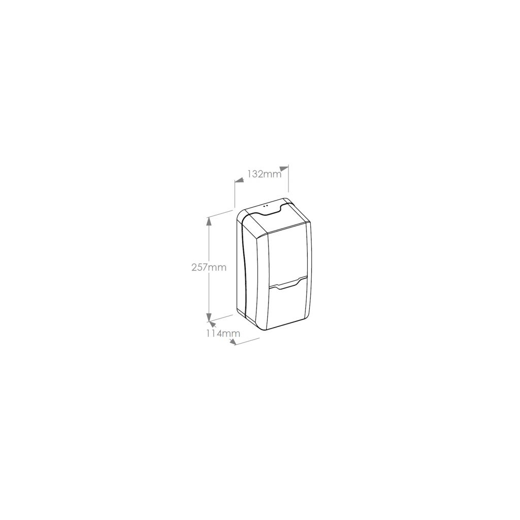 Konštrukcia z pevného plastu odoláva vlhkosti a skvele sa udržuje. Výhodou je aj zámok na vrchnej strane dávkovača. Ten chráni jeho obsah a zaisťuje jednoduchú výmenu vrecka s mydlom. Dávkovač pripevnite minimálne 200 mm nad povrchom.