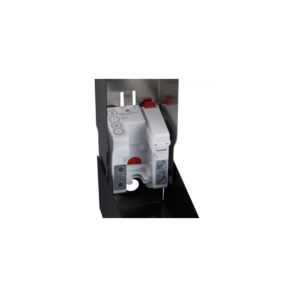 Dávkovač napája 4 kusy batérií AA. Tie zaisťujú dávkovanie, ale aj signalizáciu. Zeleno blikajúce LED svetielko indikuje, že je prístroj pripravený na použitie. Červená farba vás upozorní na nutnosť výmeny batérií.
