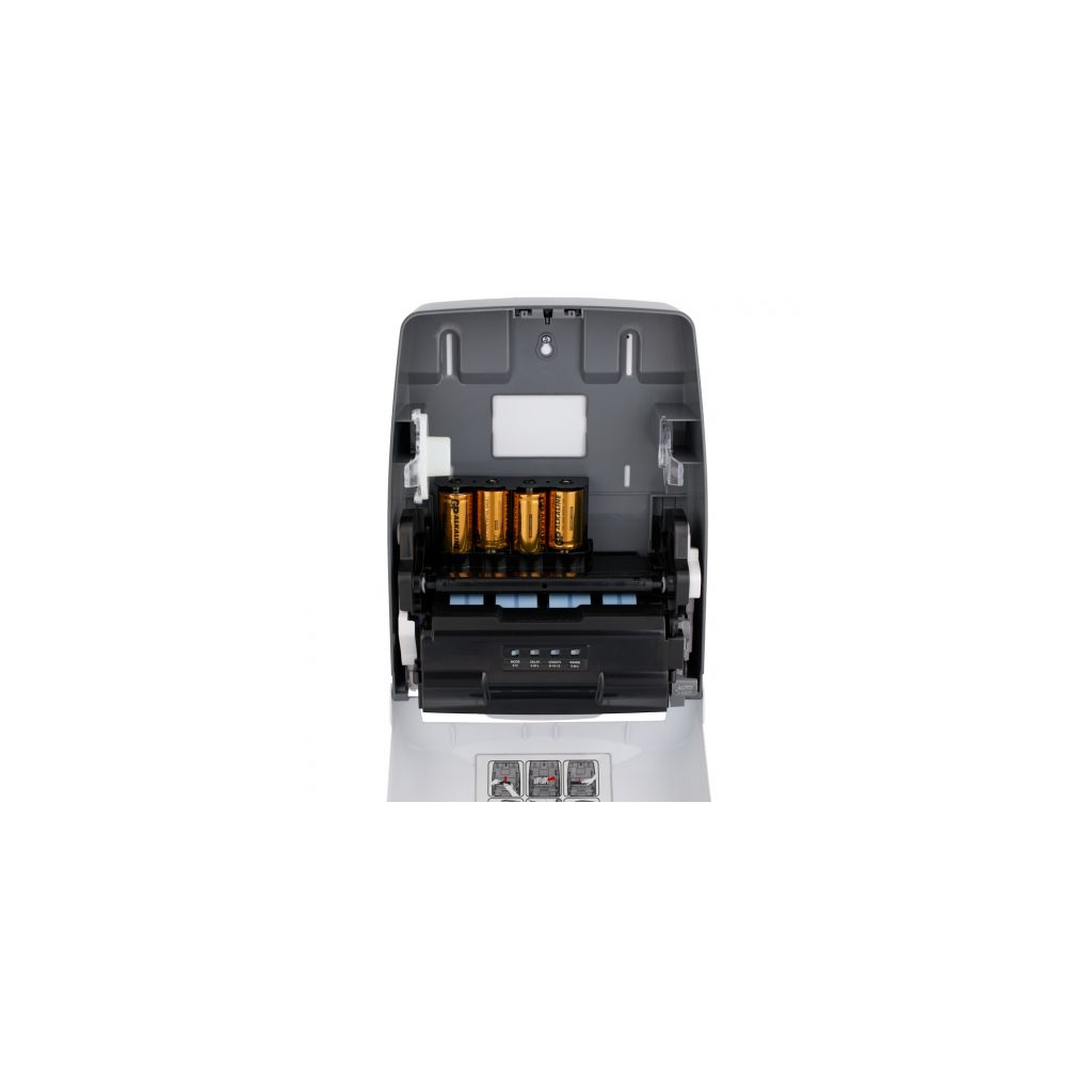 Pre napájanie môžete voliť medzi 4 kusmi batérií R20, alebo sieťovým adaptérom. Vkladanie novej role uľahčuje automatické navíjanie papiera na rolku pomocou tlačidla AUTO FEED. Zariadenie vám tiež signalizuje problémy s batériami či zaseknutým papierom, a to pomocou červeného LED indikátora.