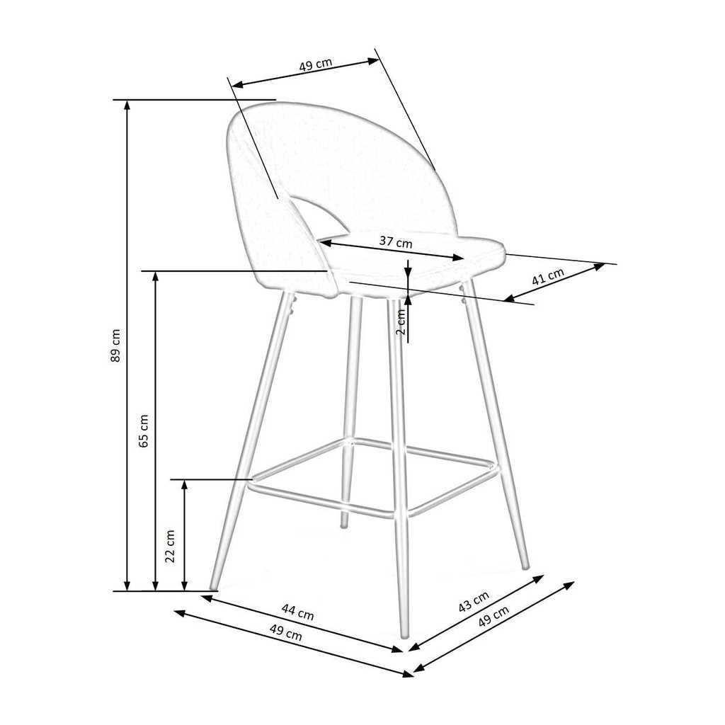 Stolička disponuje látkovým čalúnením sedadla aj operadla, ktoré zabezpečuje príjemný pocit a komfort pri sedení. Jej rozmery – 49 cm šírka i hĺbka a výška 89 cm – sú ideálne pre umiestnenie pri barovom pulte.