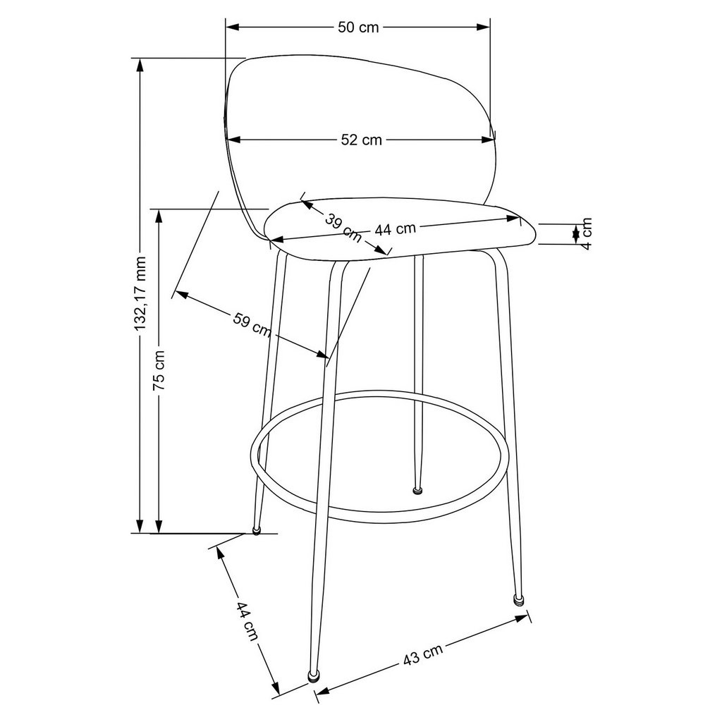 Nohy barovej stoličky sú z chrómovaných oceľových rúrok s nosnosťou 100 kg. Samotné sedadlo je čalúnené príjemnou látkou.
