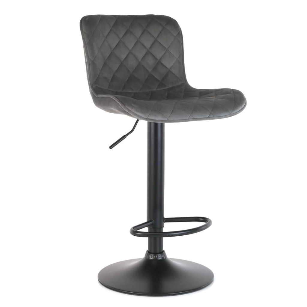 Židle stojí na matné černé noze se základnou o průměru 38 cm. Noha se volně otáčí a pomocí páčky pod sedákem si výšku sedu přizpůsobíte v rozsahu od 57 do 76 cm. K vašemu komfortu přispěje šikovná opěrka nohou (40 cm pod sedákem).