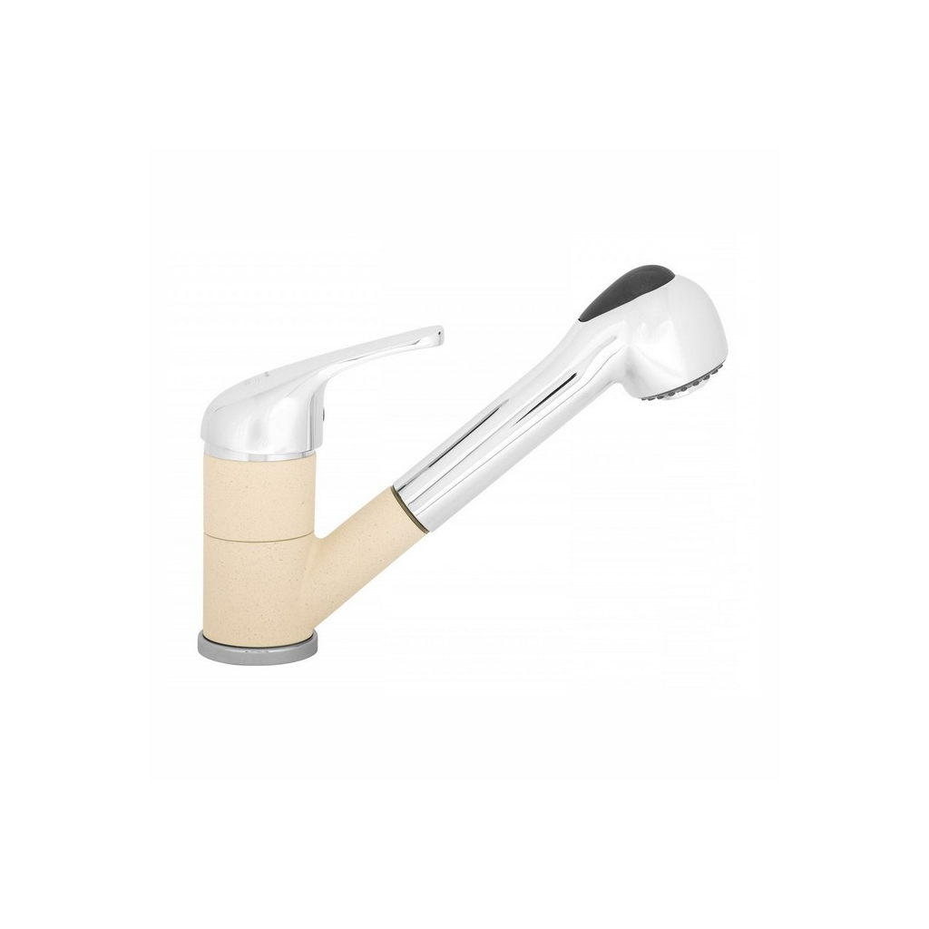Otočné ramienko vám umožní pohodlný prístup k drezu. Sprcha na konci ramienka zjednodušuje umývanie riadu. O jednoduché nastavenie teploty a prúdu vody sa postará nerezová páka, ktorá je pod kontrolou keramickej kartuše.