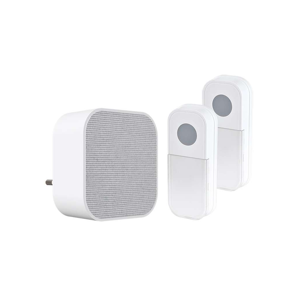 Bezdrôtový zvonček do zásuvky 1L74, 180m, 2 tlačidlá, learning code, biela