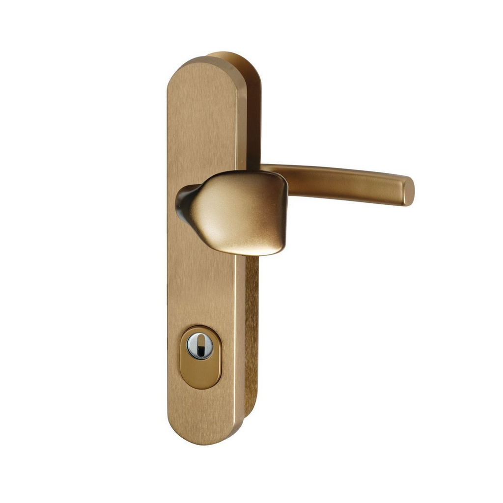 Masívny kov vašim vstupným dverám dodá na elegancii, ale aj na bezpečnosti. Toto kovanie je certifikované v triede RC3, takže v kombinácii s rovnako kvalitnou vložkou ponúkne veľmi dobré zabezpečenie.