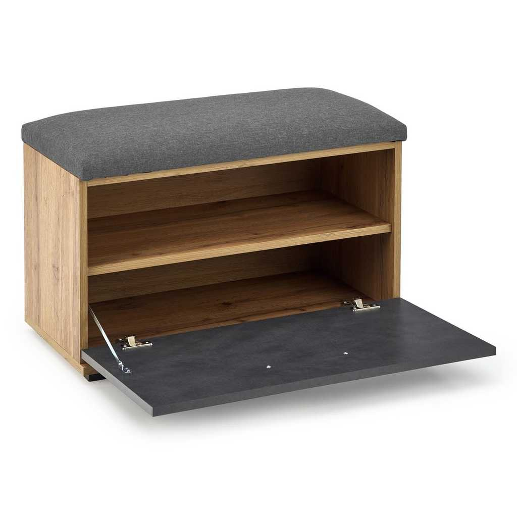 Jeho korpus sa skladá z 2 policových častí. Ponúka preto dostatok úložného priestoru pre vašu obuv. Okrem toho je vybavený látkovým sedadlom.