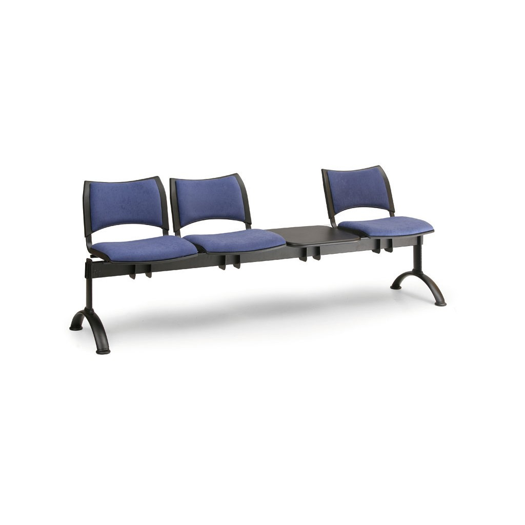 Čalúnená lavica SMART v prevedení s čiernymi kovovými nohami a odkladacím stolíkom je skvelým vybavením do verejných priestorov, hál či najrôznejších typov čakární. Jednotlivé miesta na sedenie sú umiestnené na oceľovej konštrukcii. Sedadlo aj operadlo sú čalúnené príjemnou látkou, vďaka ktorej bude sedenie ešte pohodlnejšie.