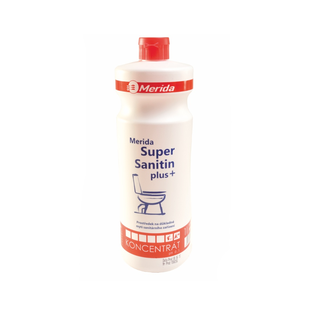 Merida Super Sanitin Plus je výborným čistiacim prvkom pre toalety. S týmto prípravkom vyčistíte okrem klasických toaletných mís taktiež výlevky, pisoáry či umývadlá. Je vhodný i pre čistenie chromovaných prvkov, ako sú kúpeľňové batérie alebo drezy.
