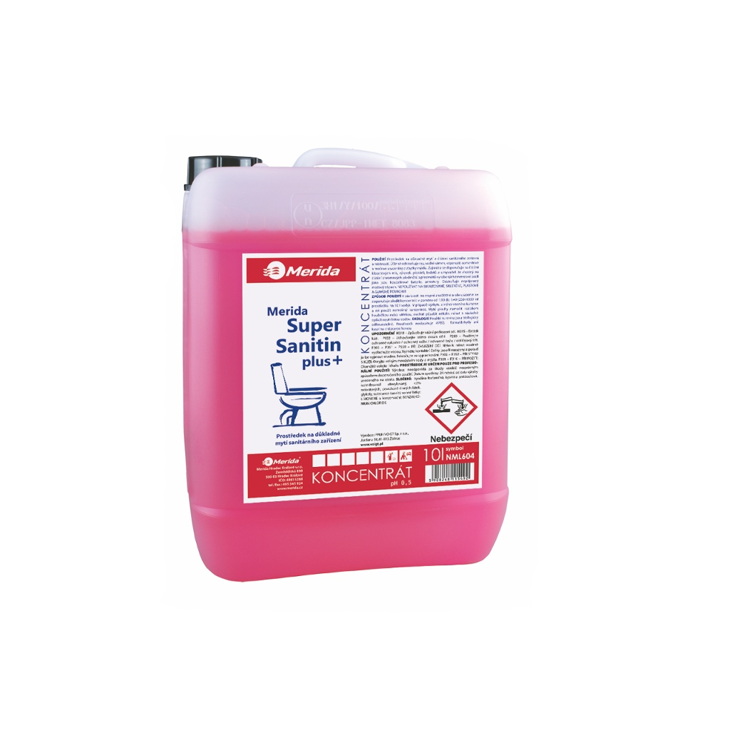 Merida Super Sanitin Plus je výborným čistiacim prvkom pre toalety. S týmto prípravkom vyčistíte okrem klasických toaletných mís taktiež výlevky, pisoáry či umývadlá. Je vhodný i pre čistenie chromovaných prvkov, ako sú kúpeľňové batérie alebo drezy.