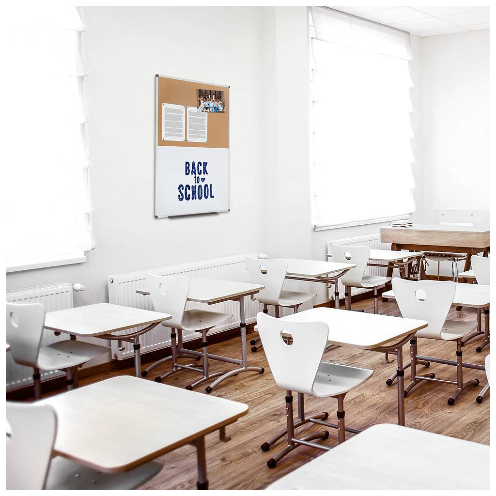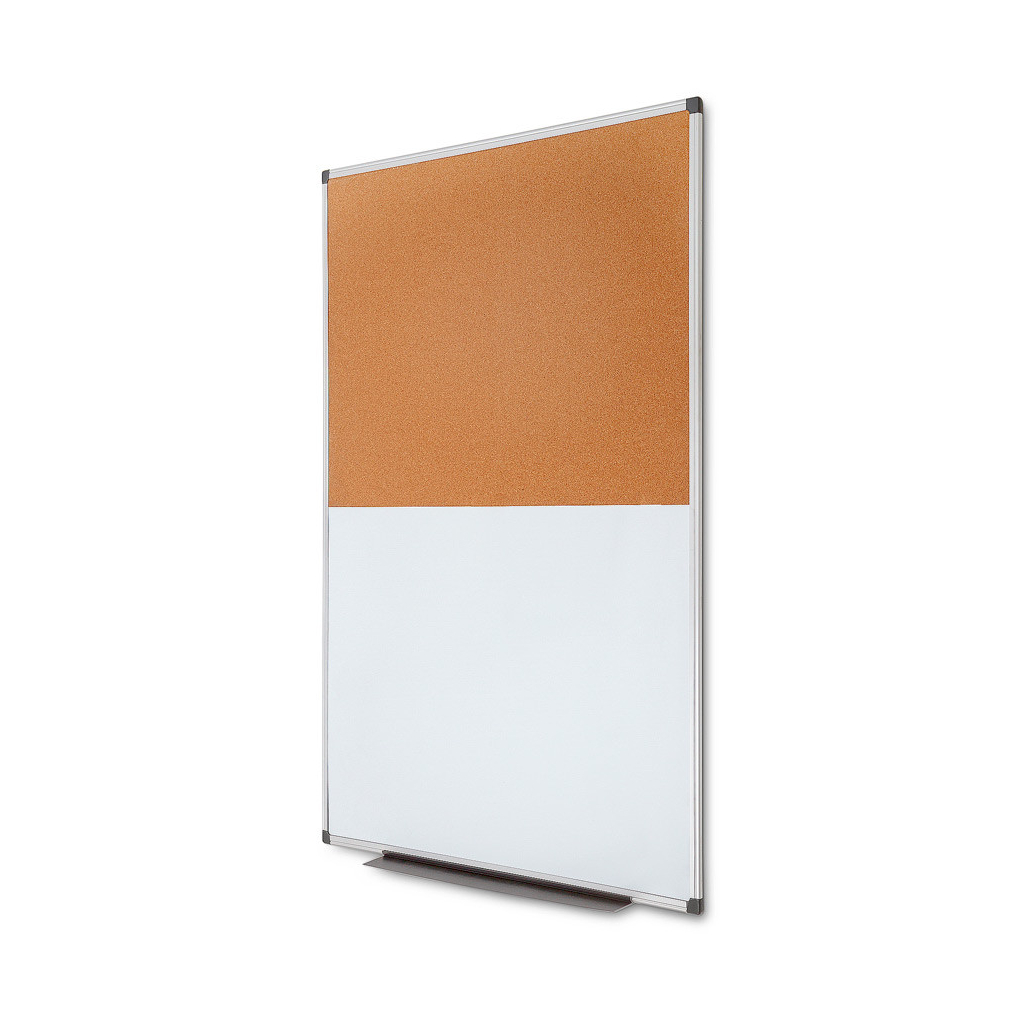 Tento model kombinuje whiteboard s korkovou nástenkou v pomere jedna ku jednej a je určený na zavesenie na stenu. Tým pádom nezaberie v miestnosti prakticky žiadne miesto. Je len na vás, či tabuľu nainštalujete vodorovne, alebo zvisle – jej konštrukcia umožňuje oboje a odkladaciu lištu na popisovače je možné nacvaknúť na ľubovoľnú stranu.