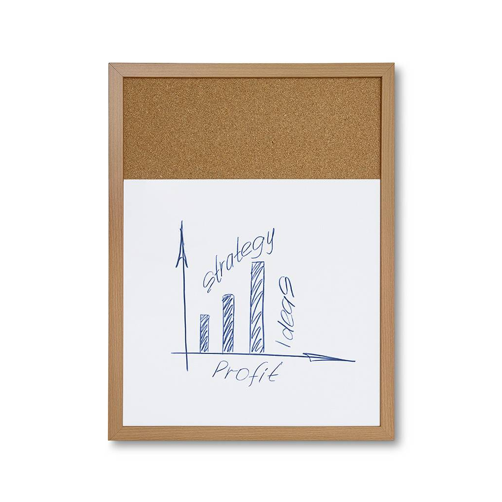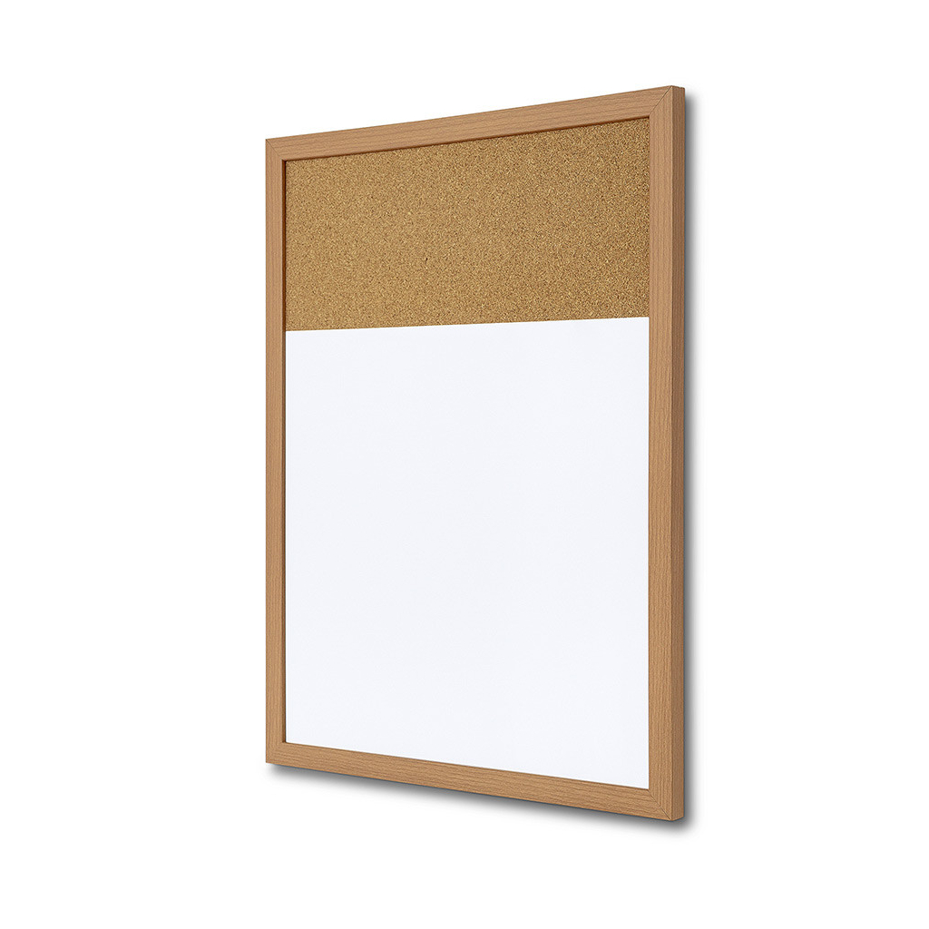 Tento model s elegantným dreveným rámom kombinuje whiteboard s korkovou nástenkou. Je určený na zavesenie na stenu, takže nezaberie v miestnosti prakticky žiadne miesto. Je len na vás, či tabuľu nainštalujete vodorovne alebo zvisle – jej konštrukcia umožňuje oboje.