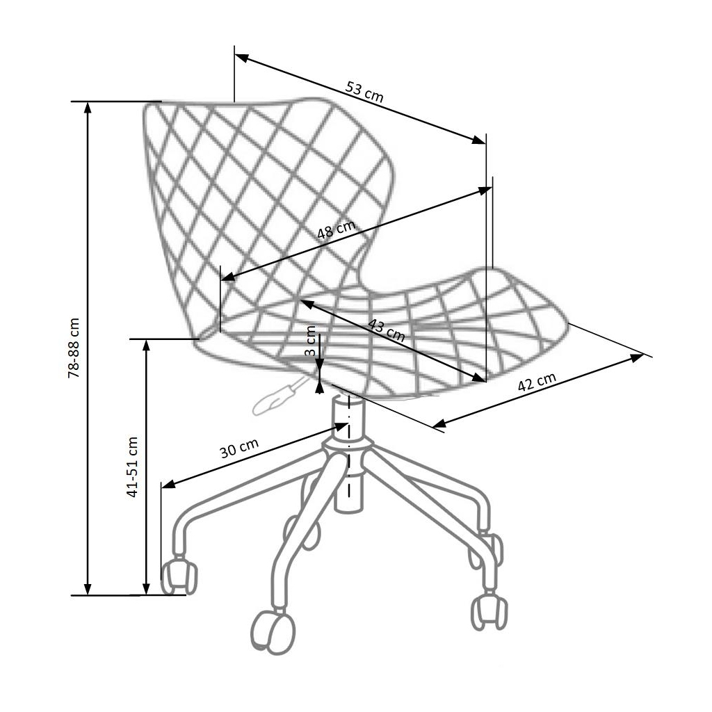 Nosný kríž stoličky je vyrobený z pevného kovu v čiernej farbe a disponuje nosnosťou až 100 kg. Stolička je štandardne vybavená kolieskami pre mäkké podlahy a koberce. Môžete si však doobjednať sadu univerzálnych koliesok, ktoré sú vhodné pre všetky typy podláh.