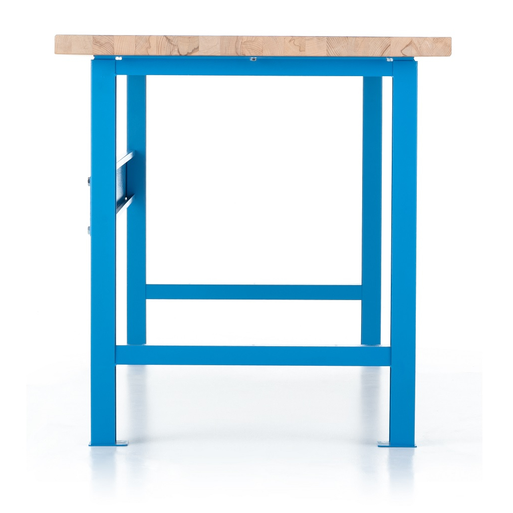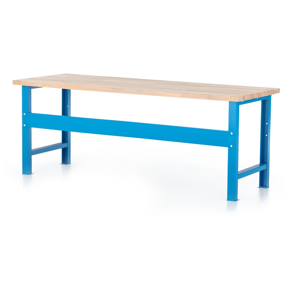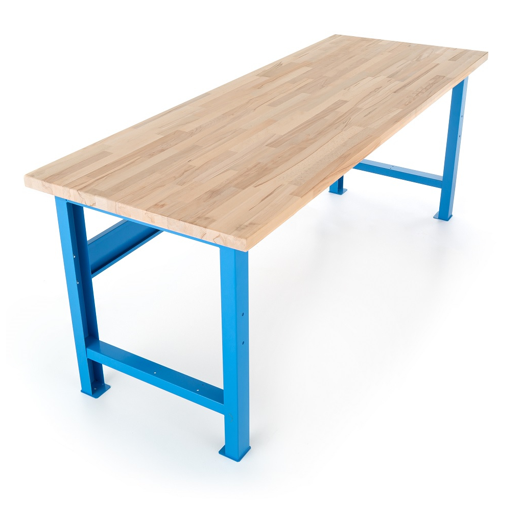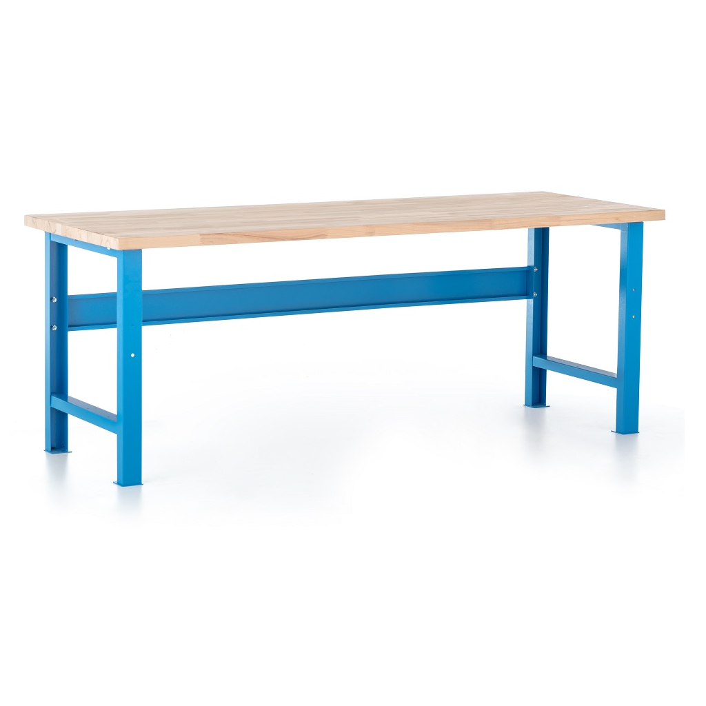 Horná doska dielenského stola je vyrobená z masívnej bukovej špárovky o sile 40 mm. Stôl, ktorého výška je 84 cm, stojí na pevnej kovovej podnoži. Tú si môžete vybrať z 2 farebných variantov, prípadne nás kontaktujte - podnož zvládneme prelakovať aj na inú farbu.