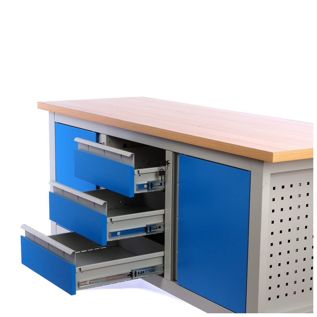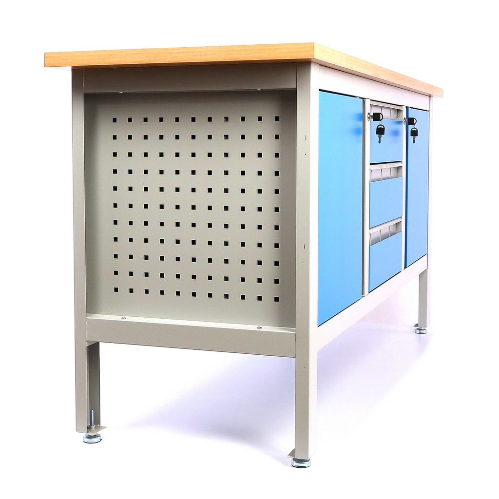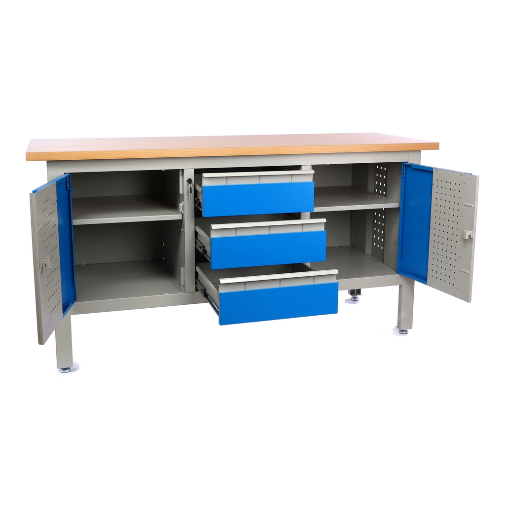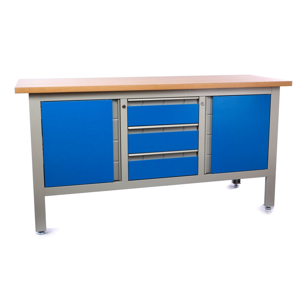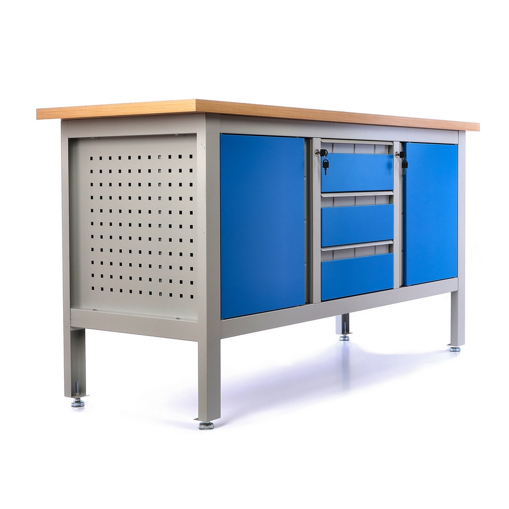Dielenský stôl s rozmermi dosky 170 x 60 cm je skvelým riešením nielen pre klasické dielne, ale aj pre najrôznejšie servisné a montážne pracoviská. Okrem veľkej pracovnej dosky si vás získa aj bohatým úložným priestorom - je to vlastne stôl a skriňa v jednom.