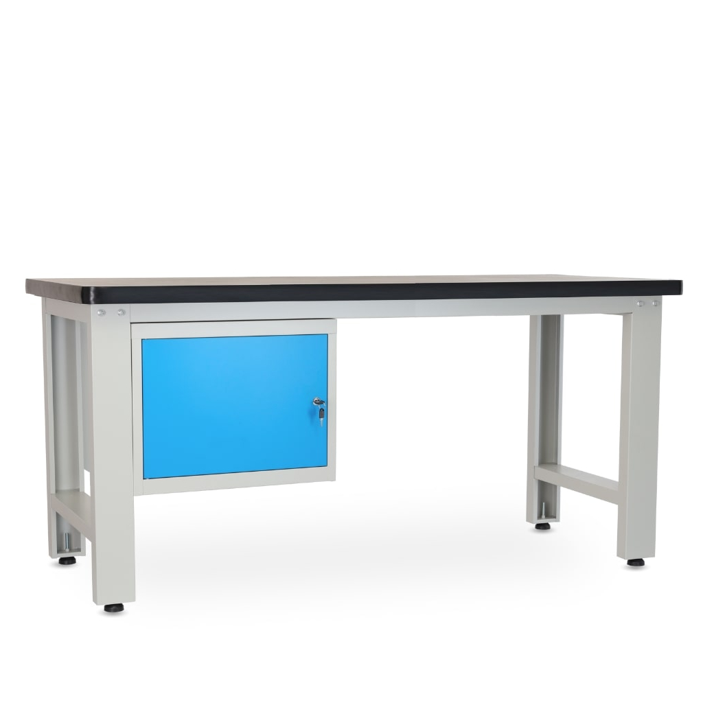 Stôl sa chváli úložným modulom, kam si odložíte náradie alebo súčiastky, ktoré práve nepotrebujete na stole. Dvierka sú lakované štandardným odtieňom RAL 5012, aby dokonale ladili aj s ďalším dielenským nábytkom.