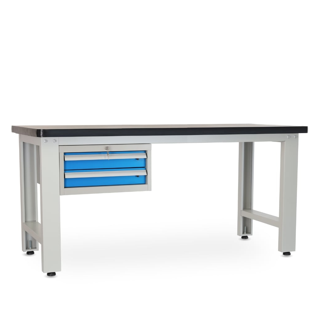 Stôl sa chváli úložným modulom, kam si odložíte náradie alebo súčiastky, ktoré práve nepotrebujete na stole. Dvierka sú lakované štandardným odtieňom RAL 5012, aby dokonale ladili aj s ďalším dielenským nábytkom.