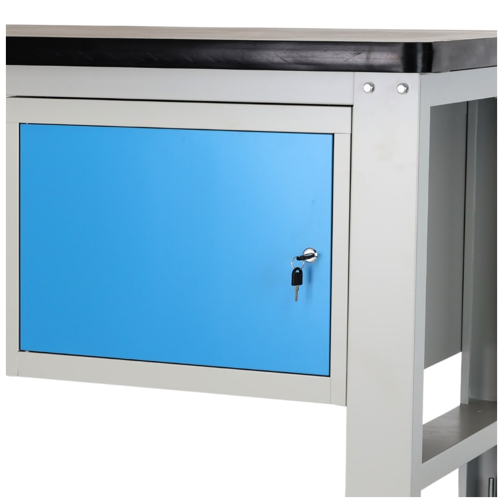 Tento typ stola vám ponúkne úložný priestor hneď v 2 rôznych moduloch. Dvierka sú lakované štandardným odtieňom RAL 5012, aby dokonale ladili aj s ďalším dielenským nábytkom.