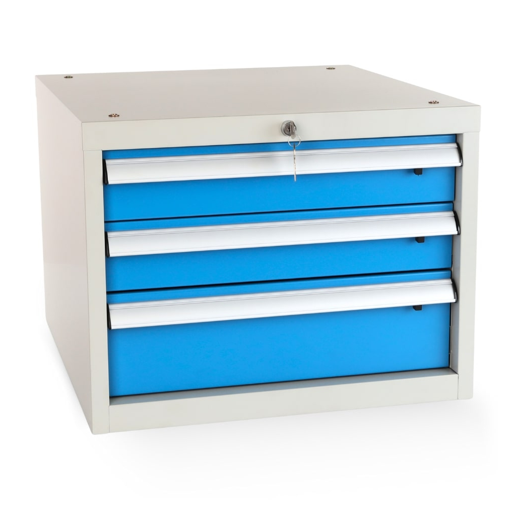 Tento typ stola vám ponúkne úložný priestor hneď v 2 rôznych moduloch. Dvierka sú lakované štandardným odtieňom RAL 5012, aby dokonale ladili aj s ďalším dielenským nábytkom.