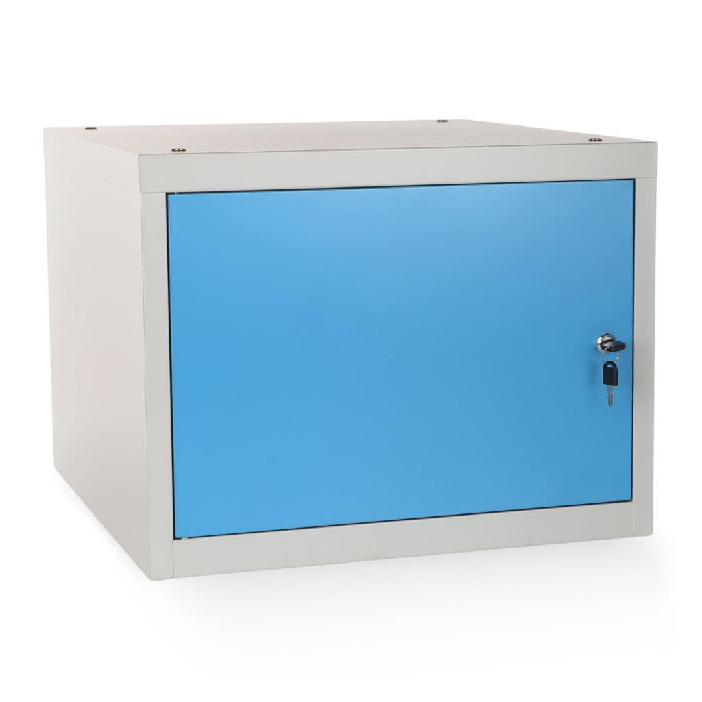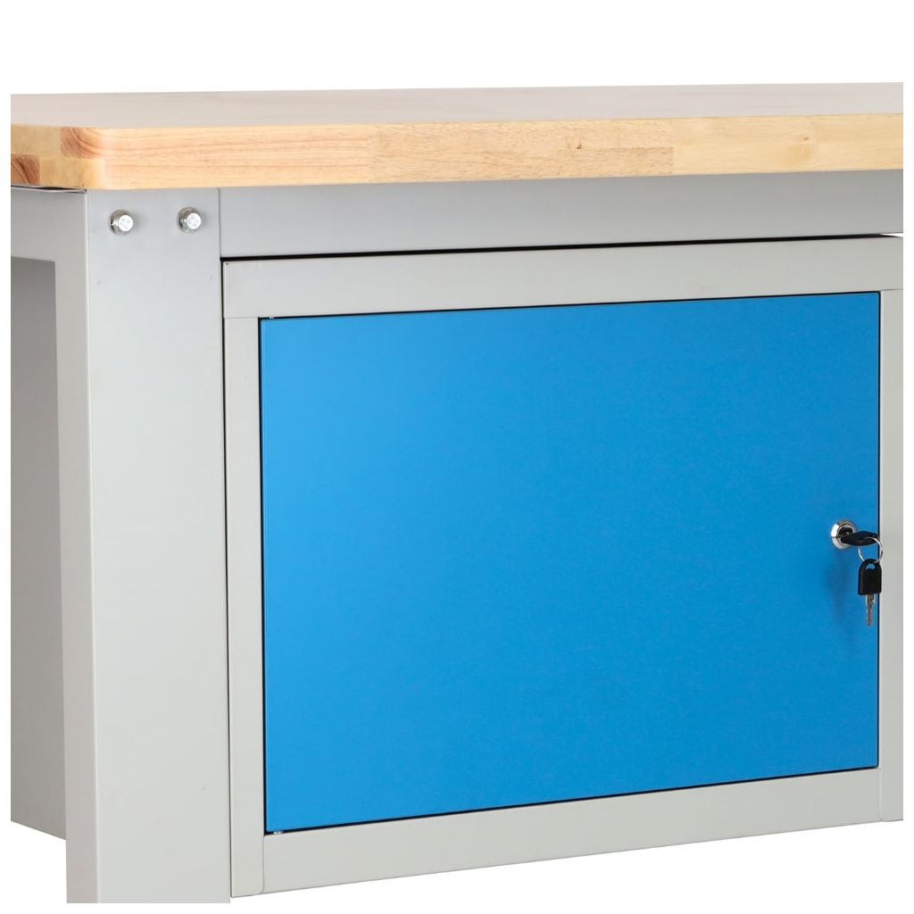 Stôl sa chváli úložným modulom, kam si odložíte náradie alebo súčiastky, ktoré práve nepotrebujete na stole. Dvierka sú lakované štandardným odtieňom RAL 5012, aby dokonale ladili aj s ďalším dielenským nábytkom.