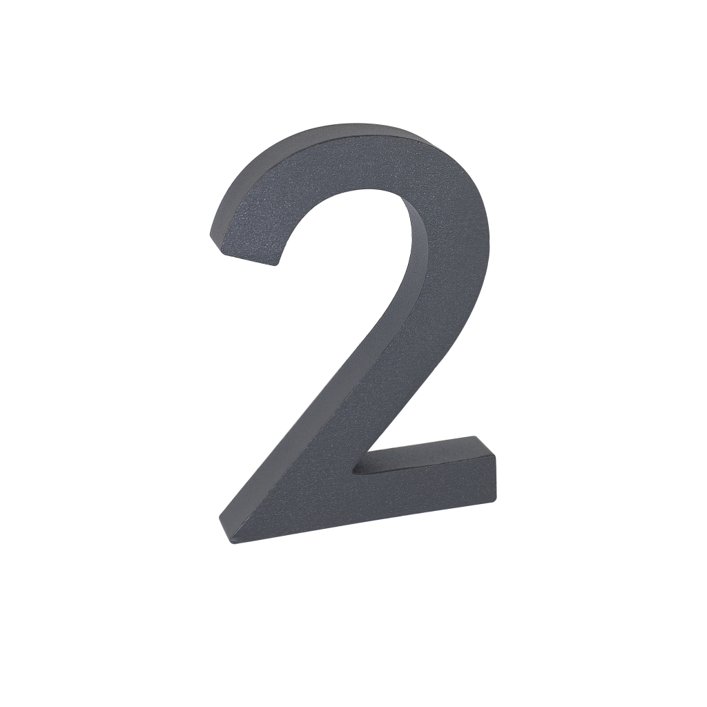 Domové číslo "2" využijete pri identifikácii objektov - ako súčasť popisného čísla na fasáde domu, firmy či iných budov. Je vyrobené z hliníka a má štruktúrovaný povrch vo farbe matného antracitu. Všetky čísla a znaky z tejto rady majú rovnakú výšku i hrúbku. Poskladáte si tak popisné a orientačné číslo v jednom štýle.