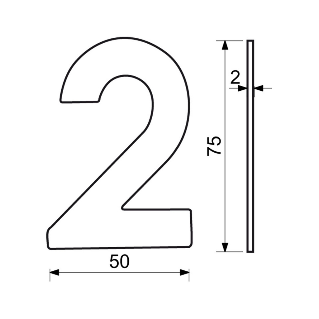 Domové číslo "2" v 2D prevedení využijete pri identifikácii objektov - ako súčasť popisného čísla na fasáde domu, firmy či iných budov. Je vyrobené z nerezovej ocele. Všetky čísla a znaky z tejto rady majú rovnakú výšku i hrúbku. Poskladáte si tak popisné a orientačné číslo v jednom štýle. Tento typ domového čísla je vhodný pre inštaláciu na stredne hrubé a hladké povrchy.