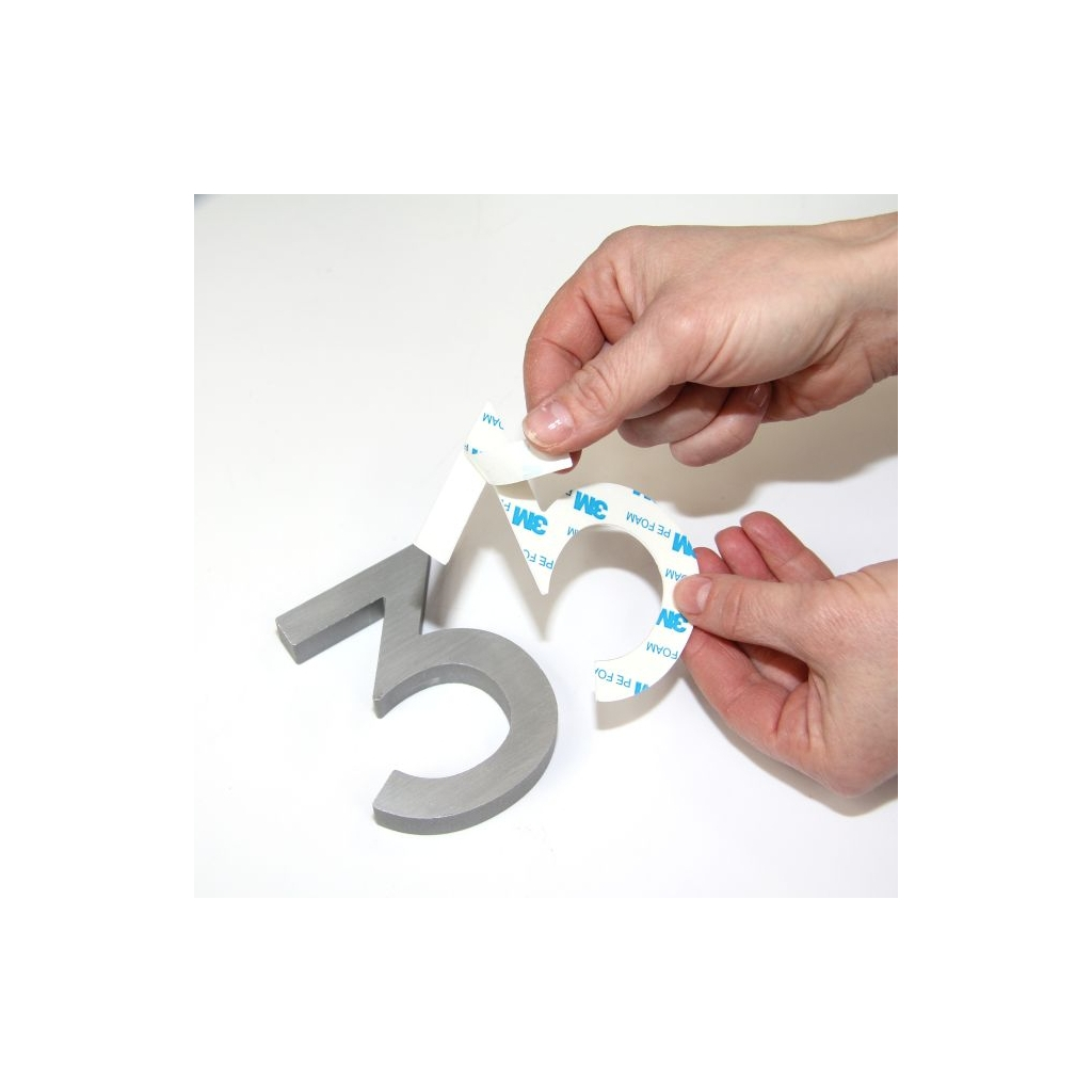 Číslo môžete nalepiť pomocou obojstrannej lepiacej pásky na fasádu. Prehliadnite si vo fotogalérii ilustračné fotky, ako túto pásku prilepiť na domové číslo. Výhodou tohoto typu montáže je jednoduchosť a presnosť. Alebo ho môžete privŕtať - naskrutkujete svorníky do čísel, vyvŕtate 2 otvory do steny a vložíte hmoždinky. V tomto prípade je výhodou pevná montáž. Treťou možnosťou je pribitie čísel. Naskrutkujete klinec so závitom do čísla a pomocou gumového alebo dreveného kladiva pribijete číslo na príslušnú plochu.