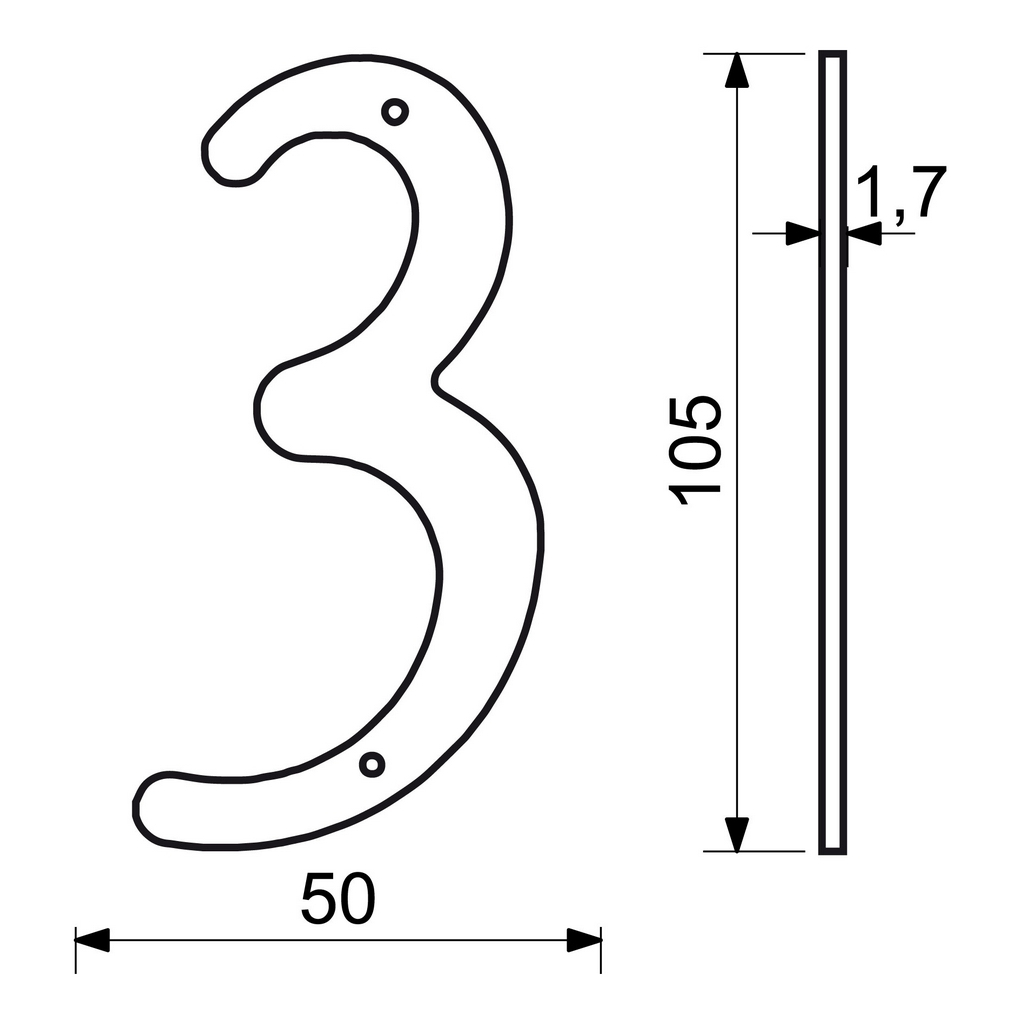 Ozdobné domové číslo "3" v 2D prevedení využijete pri identifikácii objektov - ako súčasť popisného čísla na fasáde domu, firmy či iných budov. Je vyrobené z hliníka. Všetky čísla a znaky z tejto rady majú rovnakú výšku i hrúbku. Poskladáte si tak popisné a orientačné číslo v jednom štýle. Tento typ domového čísla je vhodný pre inštaláciu na hladké drevené alebo plastové podklady.