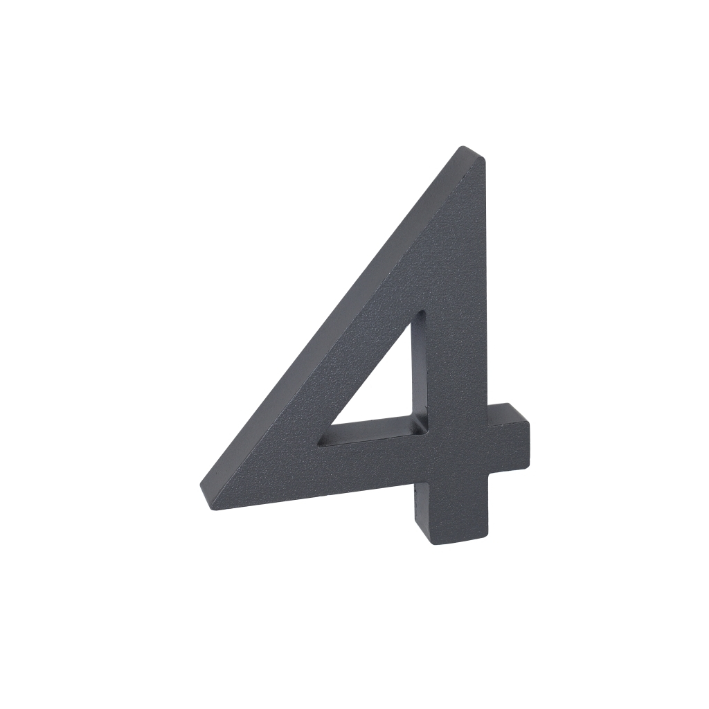 Domové číslo "4" využijete pri identifikácii objektov - ako súčasť popisného čísla na fasáde domu, firmy či iných budov. Je vyrobené z hliníka a má štruktúrovaný povrch vo farbe matného antracitu. Všetky čísla a znaky z tejto rady majú rovnakú výšku i hrúbku. Poskladáte si tak popisné a orientačné číslo v jednom štýle.