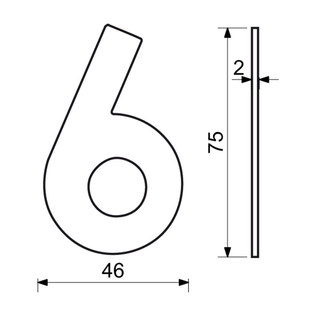Domové číslo "6" v 2D prevedení využijete pri identifikácii objektov - ako súčasť popisného čísla na fasáde domu, firmy či iných budov. Je vyrobené z nerezovej ocele. Všetky čísla a znaky z tejto rady majú rovnakú výšku i hrúbku. Poskladáte si tak popisné a orientačné číslo v jednom štýle. Tento typ domového čísla je vhodný pre inštaláciu na stredne hrubé a hladké povrchy.