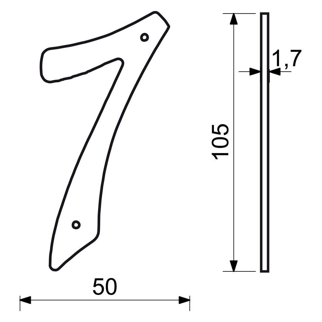 Ozdobné domové číslo "7" v 2D prevedení využijete pri identifikácii objektov - ako súčasť popisného čísla na fasáde domu, firmy či iných budov. Je vyrobené z hliníka. Všetky čísla a znaky z tejto rady majú rovnakú výšku i hrúbku. Poskladáte si tak popisné a orientačné číslo v jednom štýle. Tento typ domového čísla je vhodný pre inštaláciu na hladké drevené alebo plastové podklady.