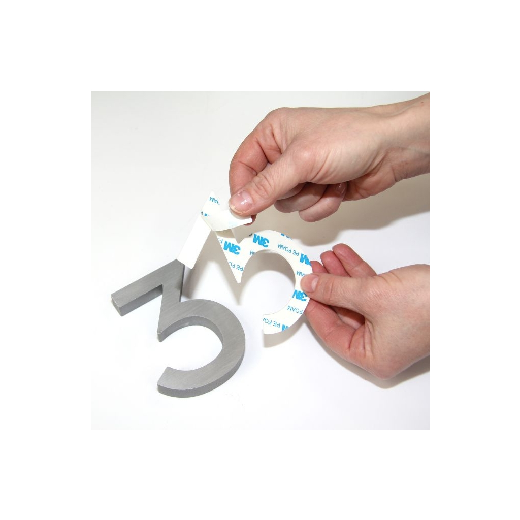 Číslo môžete nalepiť pomocou obojstrannej lepiacej pásky na fasádu. Prehliadnite si vo fotogalérii ilustračné fotky, ako túto pásku prilepiť na domové číslo. Výhodou tohoto typu montáže je jednoduchosť a presnosť. Alebo ho môžete privŕtať - naskrutkujete svorníky do čísel, vyvŕtate 2 otvory do steny a vložíte hmoždinky. V tomto prípade je výhodou pevná montáž. Treťou možnosťou je pribitie čísel. Naskrutkujete klinec so závitom do čísla a pomocou gumového alebo dreveného kladiva pribijete číslo na príslušnú plochu.