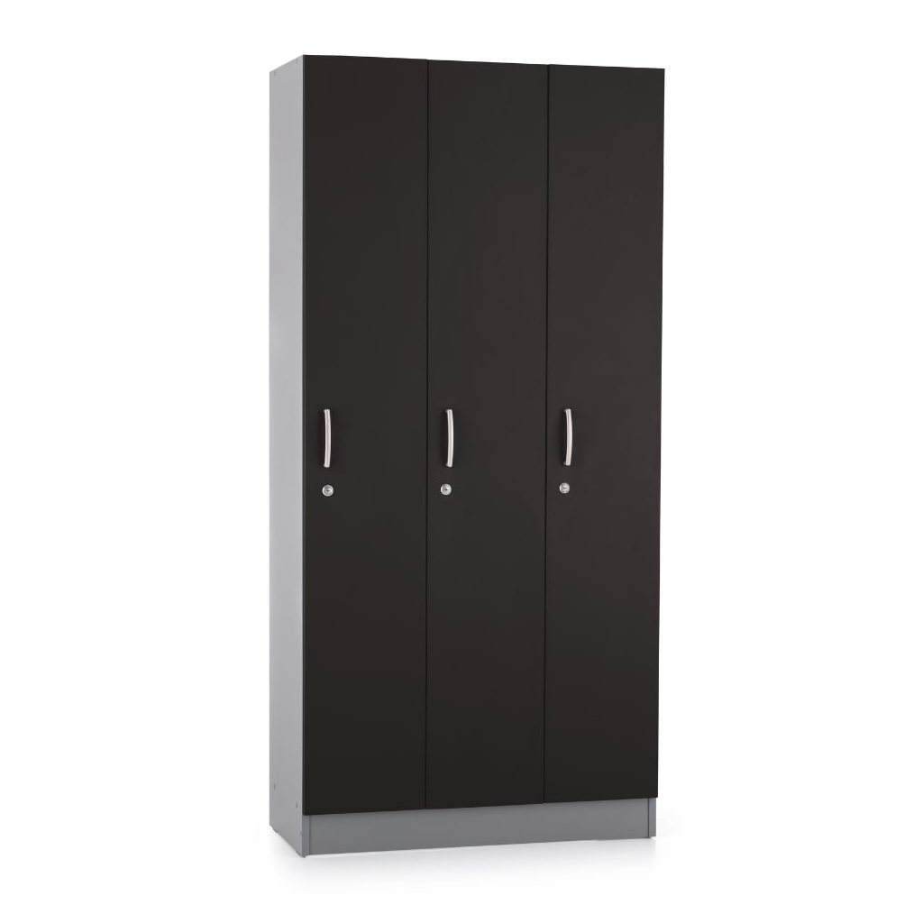 Skriňa je rozdelená do 3 samostatných uzamykateľných oddielov. Vo vnútri každého oddielu sa nachádzajú 3 úložné priestory oddelené 2 policami. Spodný priestor slúži k odloženiu obuvi, stredný k zaveseniu vašich zvrškov na praktický dvojháčik a vrchný úložný priestor vám poslúži k uloženiu osobných vecí.