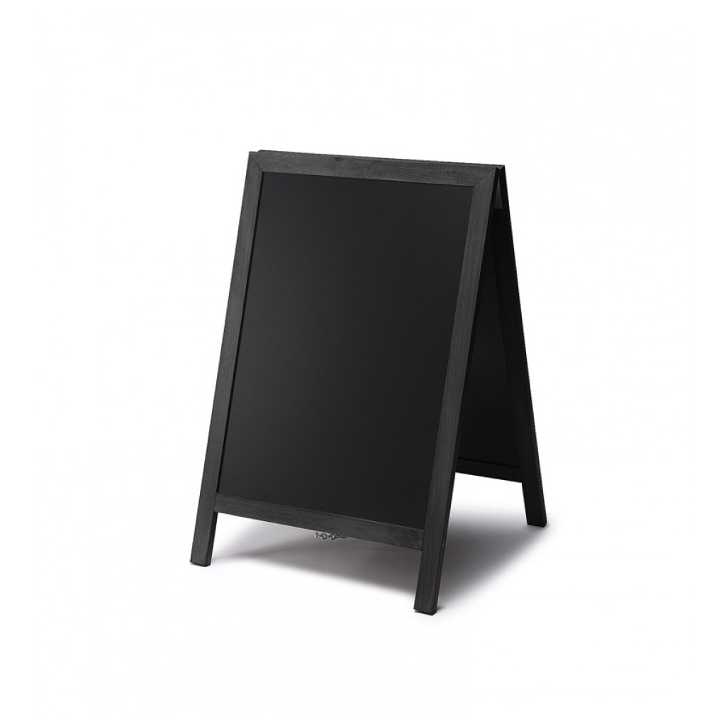 Reklamné áčko z kvalitného bukového dreva s profilom v tmavohnedej, čiernej, alebo svetlohnedej farbe. Elegantný dizajn je perfektnou voľbou pre kreatívnu upútavku. Kriedová plocha a drevená konštrukcia dodávajú retro nádych. Čierna LTD (laminovaná drevotrieska) s rozmermi 55 x 85 cm je ľahko popisovateľná všetkými typmi kriedových popisovačov. Vďaka ochrannému UV laku je tabuľa vhodná do vonkajších priestorov.