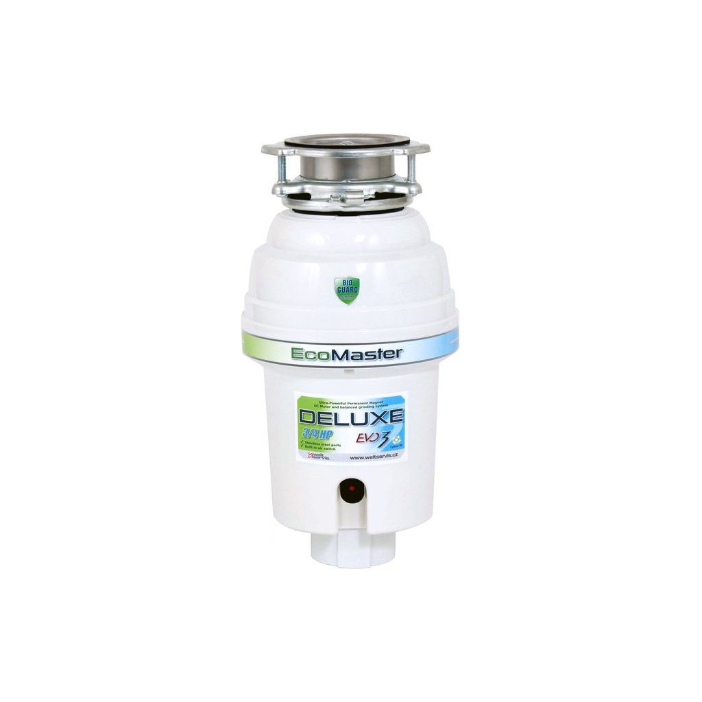 Drvič odpadu EcoMaster DELUXE EVO3 vás raz a navždy zbaví zvyškov jedál z drezu. Vďaka nemu môžete škrabať zeleninu pohodlne nad drezom a jedným tlačidlom zlikvidovať všetky šupky a odrezky. Nikde nič netleje a nehnije. Bez zápachu a nepríjemných kŕdľov múch.