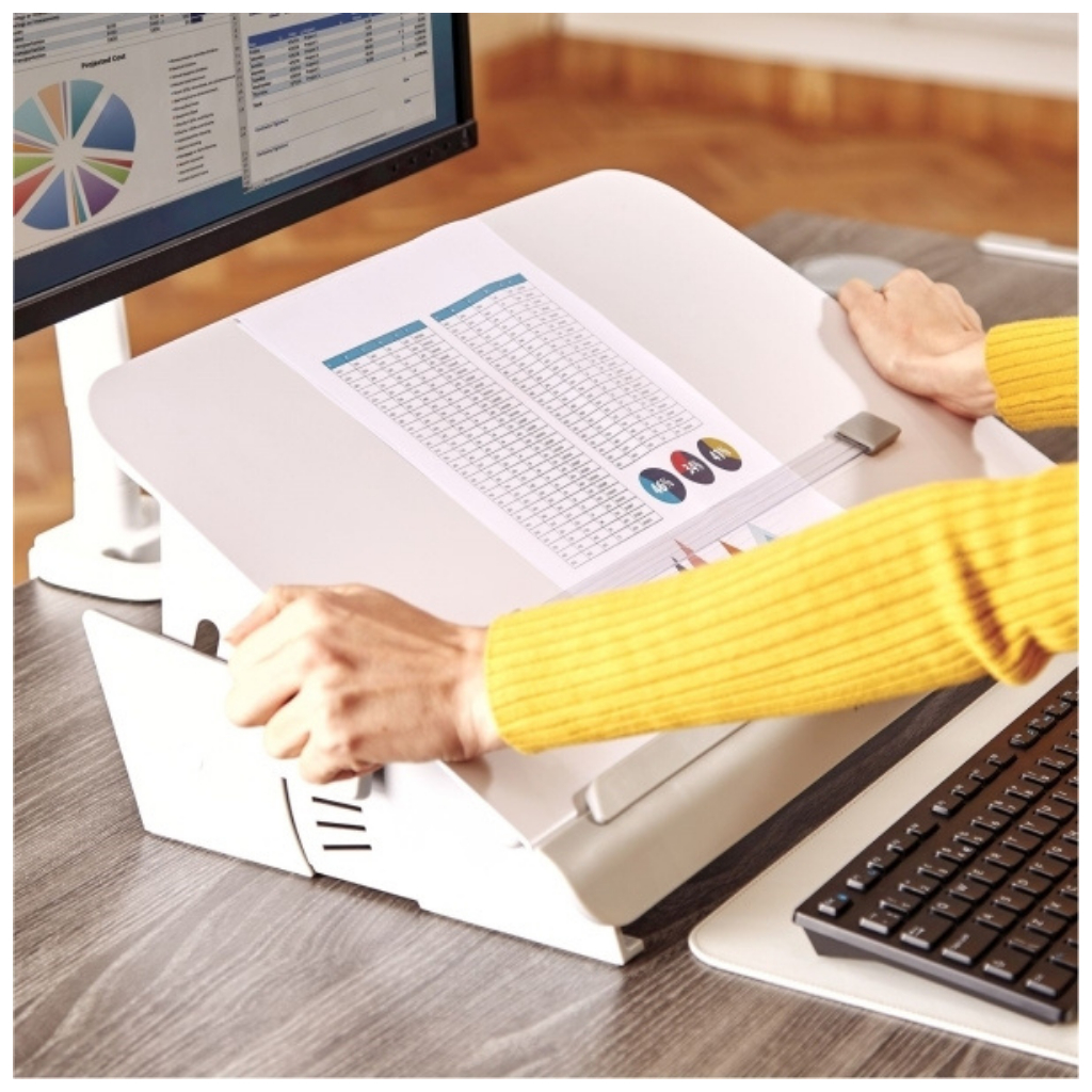 Nastaviteľný držiak HANA vám uľahčí prácu v kancelárii aj z domova. Jedná sa o držiak na dokumenty o formáte až A3 so zabudovaným vnútorným priestorom na telefón alebo kancelárske potreby.
