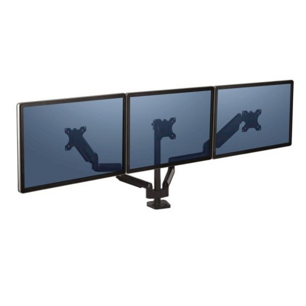 Držiak monitora Fellowes Platinum s 3 ramenami vedľa seba umožňuje jednoduché nastavenie monitorov do úrovni očí, čím zmierňuje svalové napätie ramien a krku. Je vhodný pre LCD a TFT monitory s uhlopriečkou až 30" a hmotnosťou 9 kg na 1 rameno.