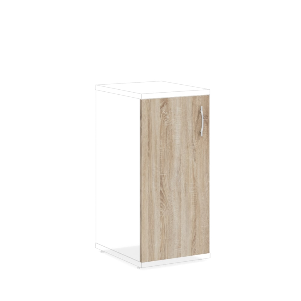 Skriňové dvere Impress s rozmermi 36,6 x 1,6 x 74,2 cm sú určené pre nízku skriňu Impress v úzkom prevedení. Vďaka týmto dverám zabránite pohľadom na veci umiestnené v skrini a ochránite ich aj proti prachu. Skriňové dvere majú hrúbku 16 mm a sú vybavené pohodlnou kovovou úchytkou. Dvere dodávame rovnako ako samotné skrine v 4 dezénoch – javor, hruška, tmavý orech a biela.