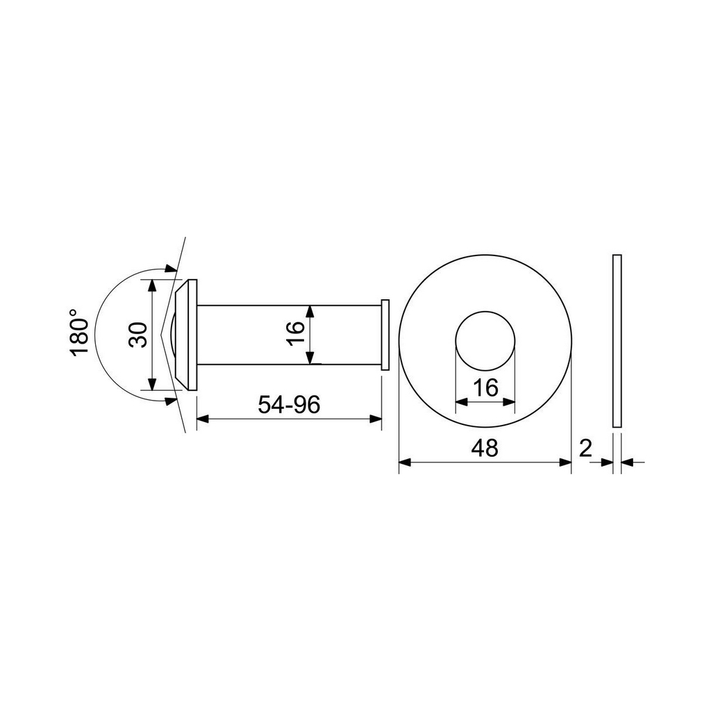 Kukátko má pozorovací uhol 180° a je vhodné pre hrúbku dverí 54-96 mm. Je vyrobené zo zamaku (zliatina zinku, hliníka, horčíka a medi) s povrchovou úpravou do matného niklu. Súčasťou balenia sú 2 ks podložiek.