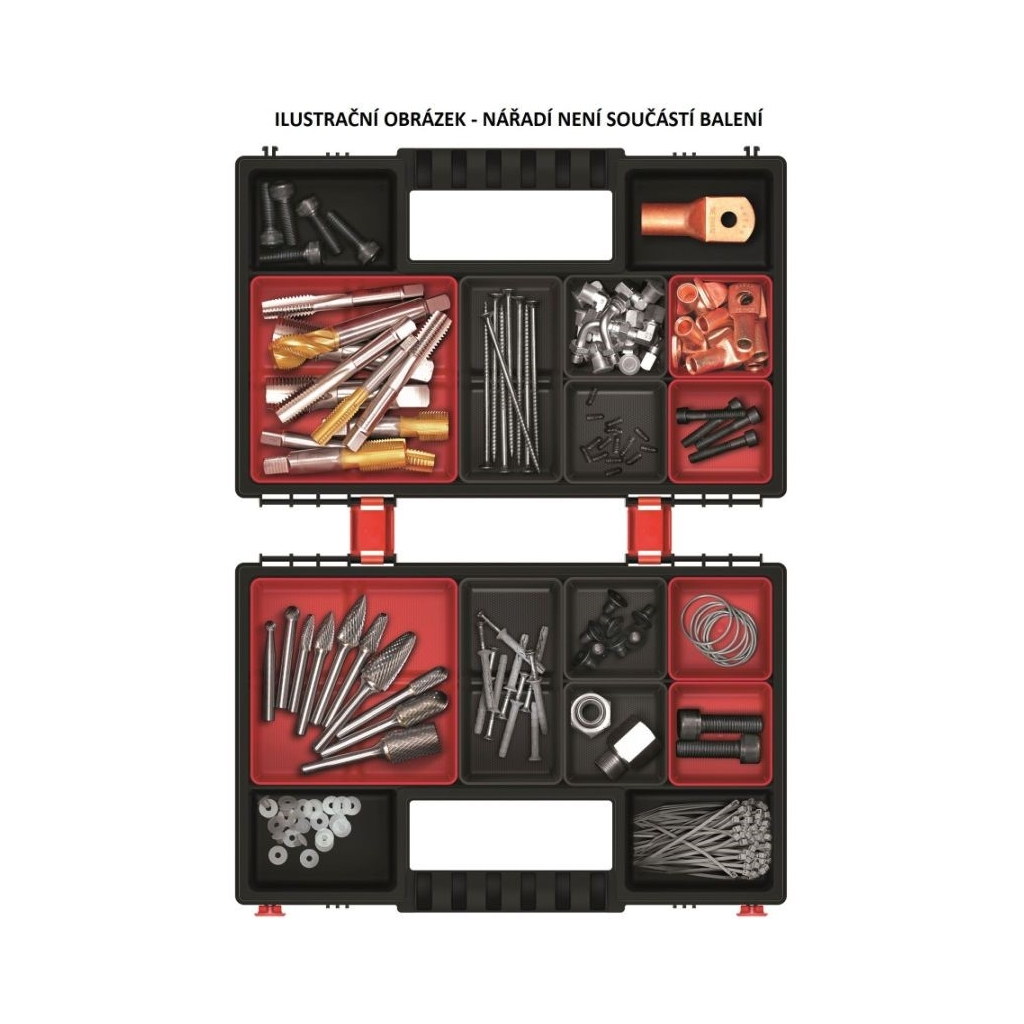 Organizéry predstavujú praktický spôsob, ako si udržať poriadok v drobnejšom náčiní a súčiastkach a zároveň ich mať vždy po ruke. Tento model je vybavený odnímateľnými krabičkami.
