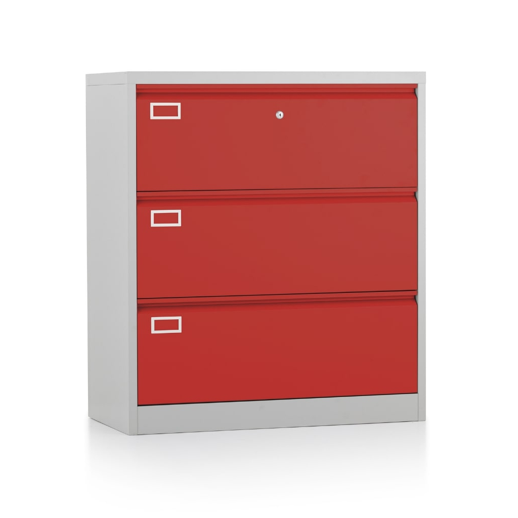 Dvojradová kovová kartotéka A4 - 3 zásuvky, 90 x 45 x 102 cm, cylindrický zámok, červená - ral 3000