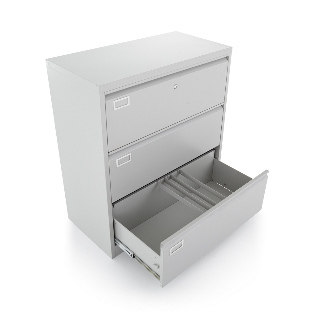 Disponuje 3 širokými zásuvkami so závesom, ktoré sú vhodné pre zložky a dokumenty formátu A4.