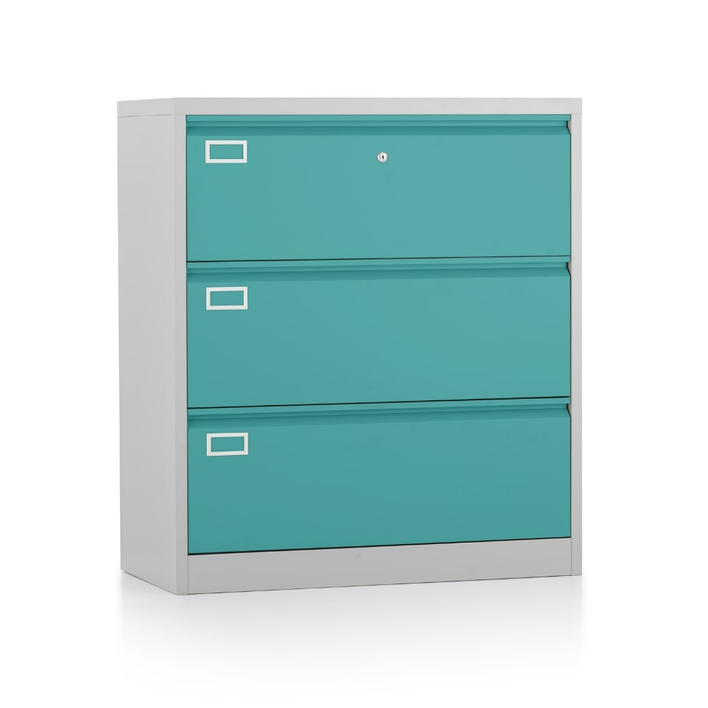 Disponuje 3 širokými zásuvkami so závesom, ktoré sú vhodné pre zložky a dokumenty formátu A4.