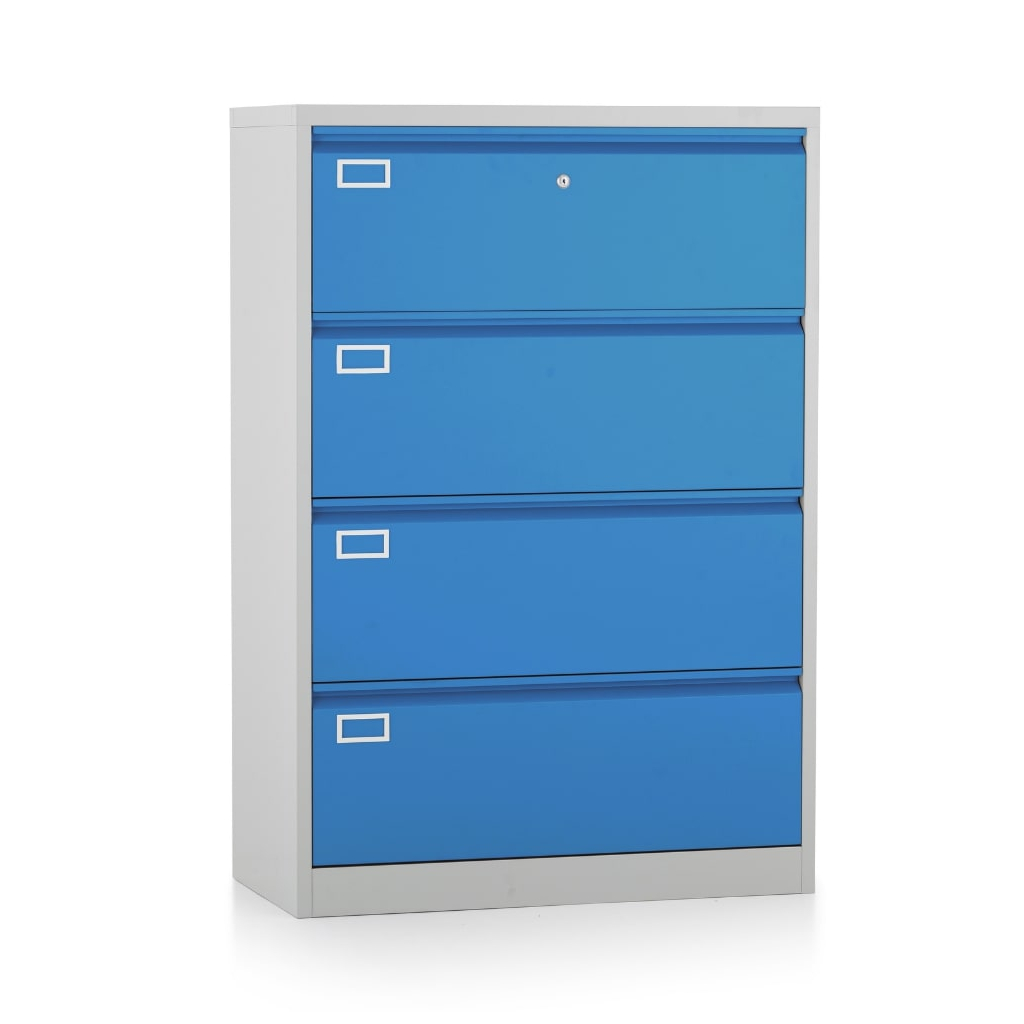 Dvojradová kovová kartotéka A4 - 4 zásuvky, 90 x 45 x 132 cm, cylindrický zámok, modrá - ral 5012